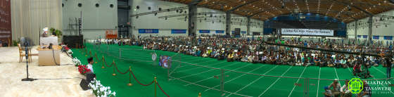 Selanjutnya Huzur aba menyampaikan langsung pidato di hadapan ribuan sukarelawan yang bertugas menyambut dan mengkhidmati tamu-tamu pada konvensi ini.